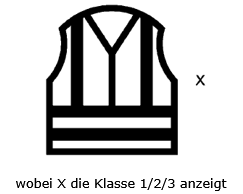 - Hochsichtbare Kleidung wird in drei Klassen eingeteilt. Jede Klasse soll mindestens sichtbare Materialien enthalten, die in das Kleidungsstück integriert sind.