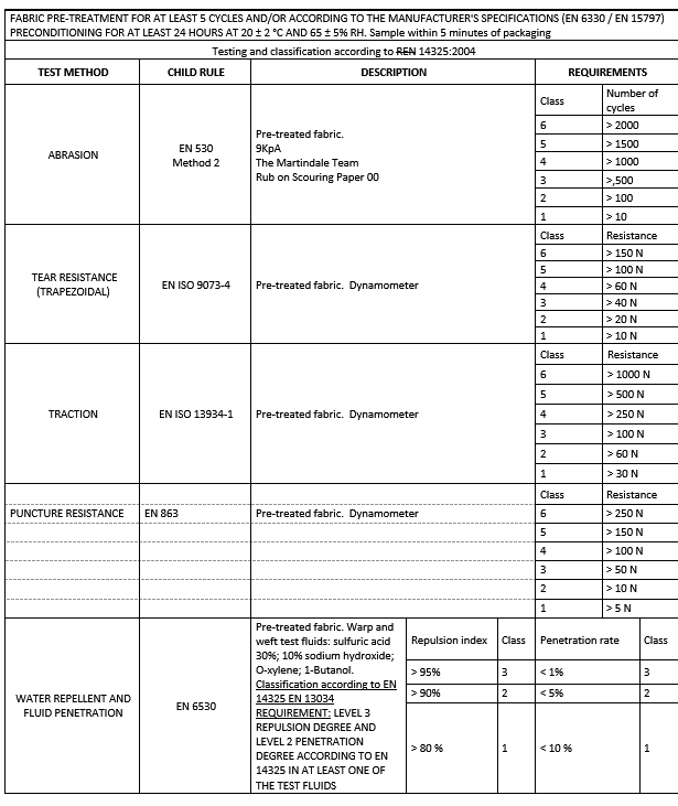 • For Type 6 garments, they must meet the requirements of the 7 movements, and for Type PB 6 garments, they must not be tested with the light spray test.