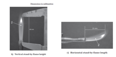 -Adjust the flame according to images after 2 minutes of preheating the flame. The measurements are from the tip of the burner stabilizer to the end of the yellow part of the flame.