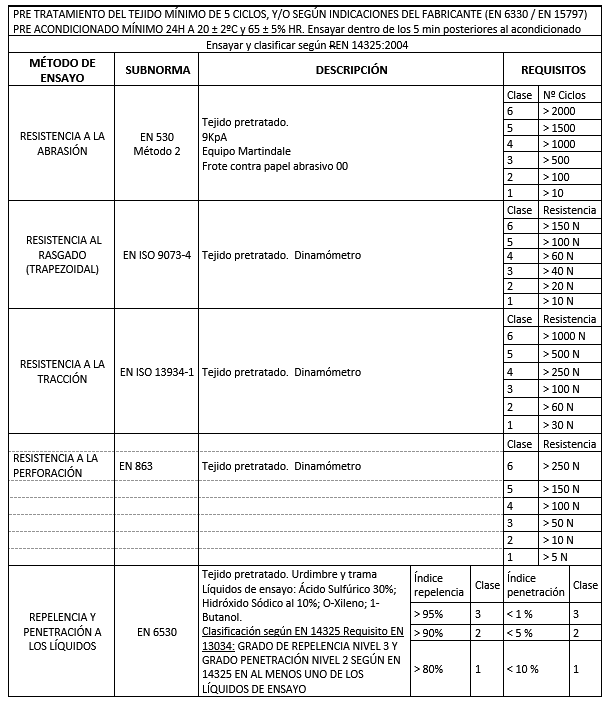 REQUISITOS DE PRESTACIONES PARA LA ROPA DE PROTECCIÓN QUÍMICA QUE OFRECE PROTECCIÓN LIMITADA CONTRA PRODUCTOS QUÍMICOS LÍQUIDOS (equipos del tipo 6)